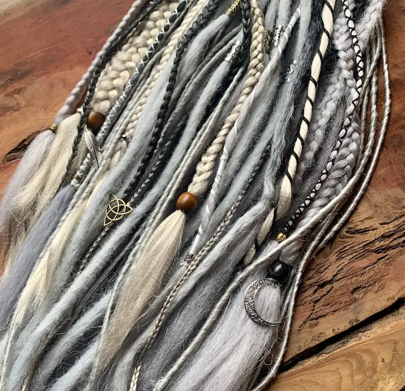 On the spot Excellent-looking Nordic Prolonged Gray and silver vogue locs. In a position to position on clip in Dreads and braids mixes synthetic Handcrafted faux dreadlocks, hair wraps ,twists and braids.
